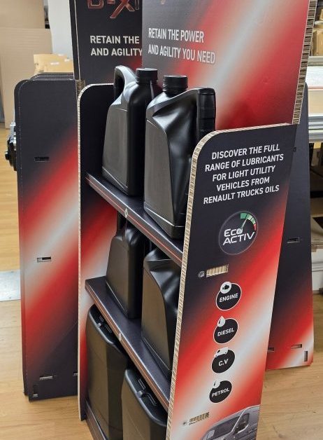 Total Energies approached CSDPrint to design and produce a sustainable, cost-effective freestanding display unit. The unit needed to be very strong and robust, while being environmentally friendly.